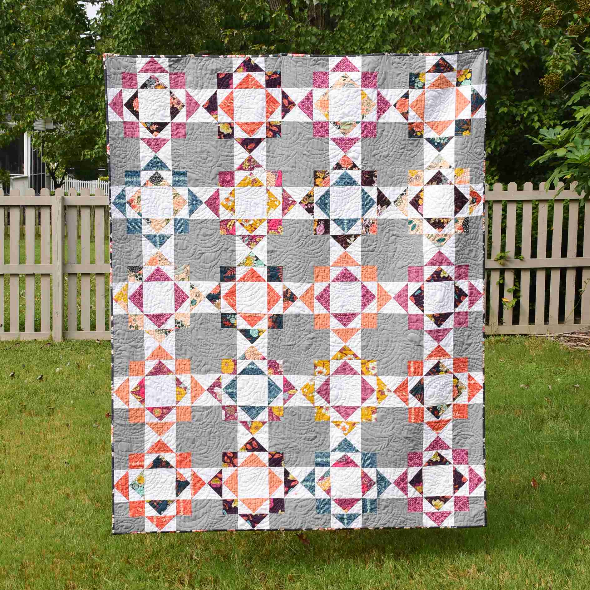 Camden is fat quarter friendly pattern based on the traditional Mrs. Bryan’s Choice quilt block. The flying geese in the quilt blocks are made using the no-waste (also called the four at a time) method.