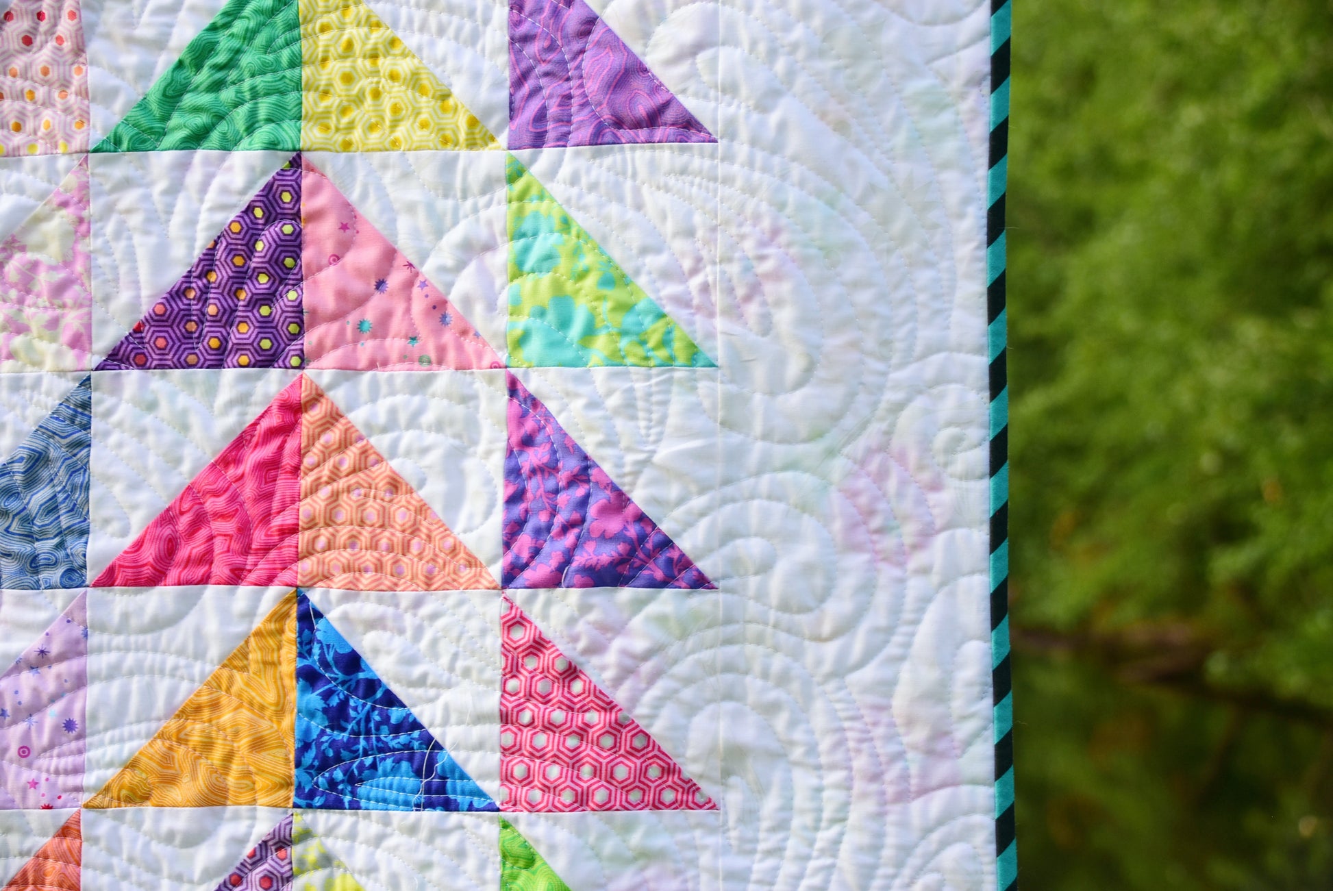 Chloe is a beginner friendly pattern that utilizes half square triangles to make a lap sized quilt. The pattern is layer cake and charm pack friendly.