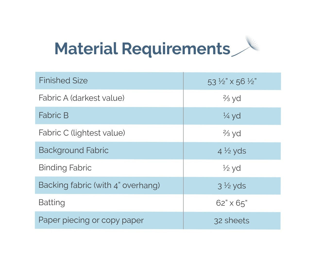 Half Circle Mirror combines paper pieced blocks and negative space for a dramatic, geometric quilt design. The lap sized quilt (53 ½" x 56 ½") materials can be found in the pictures.