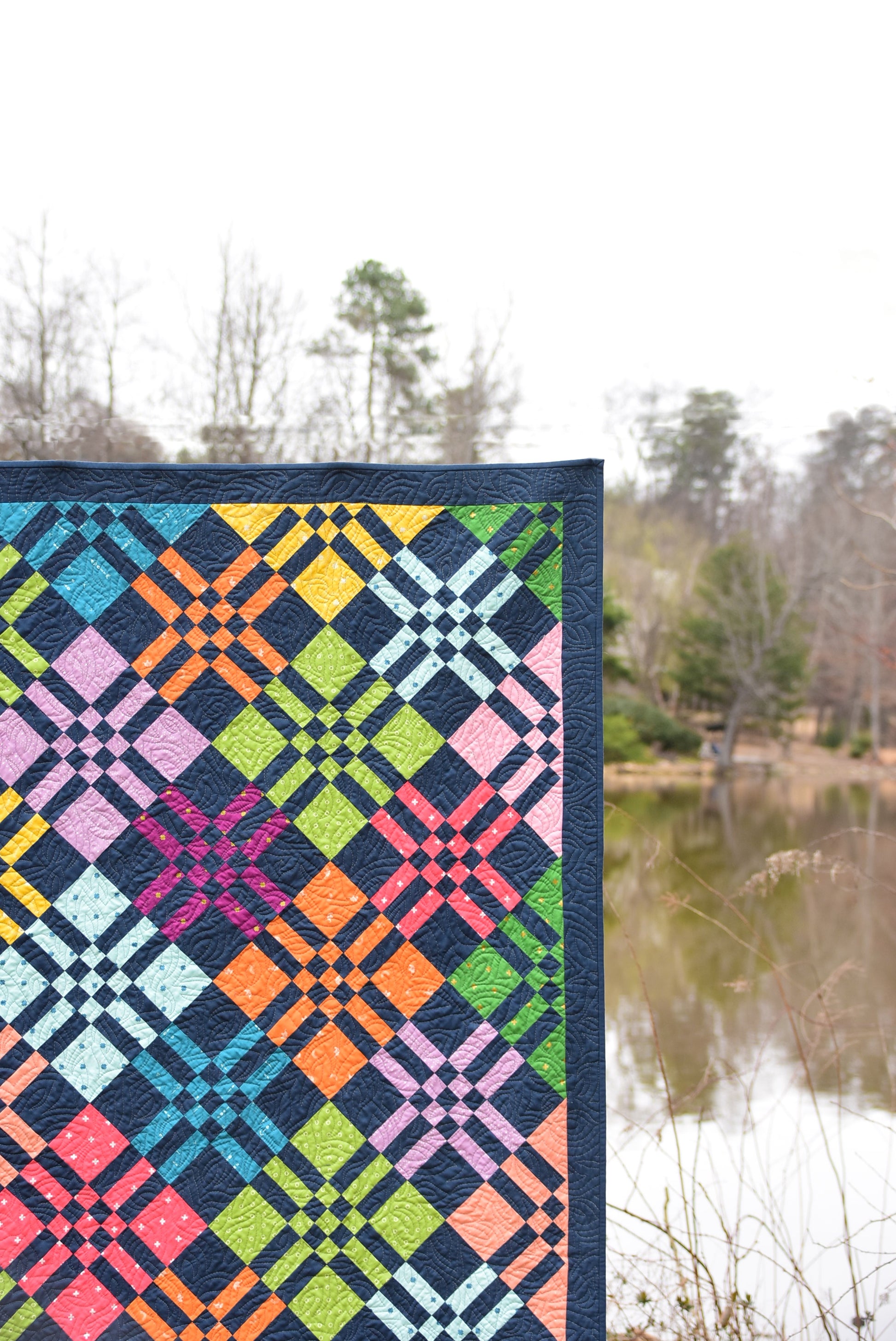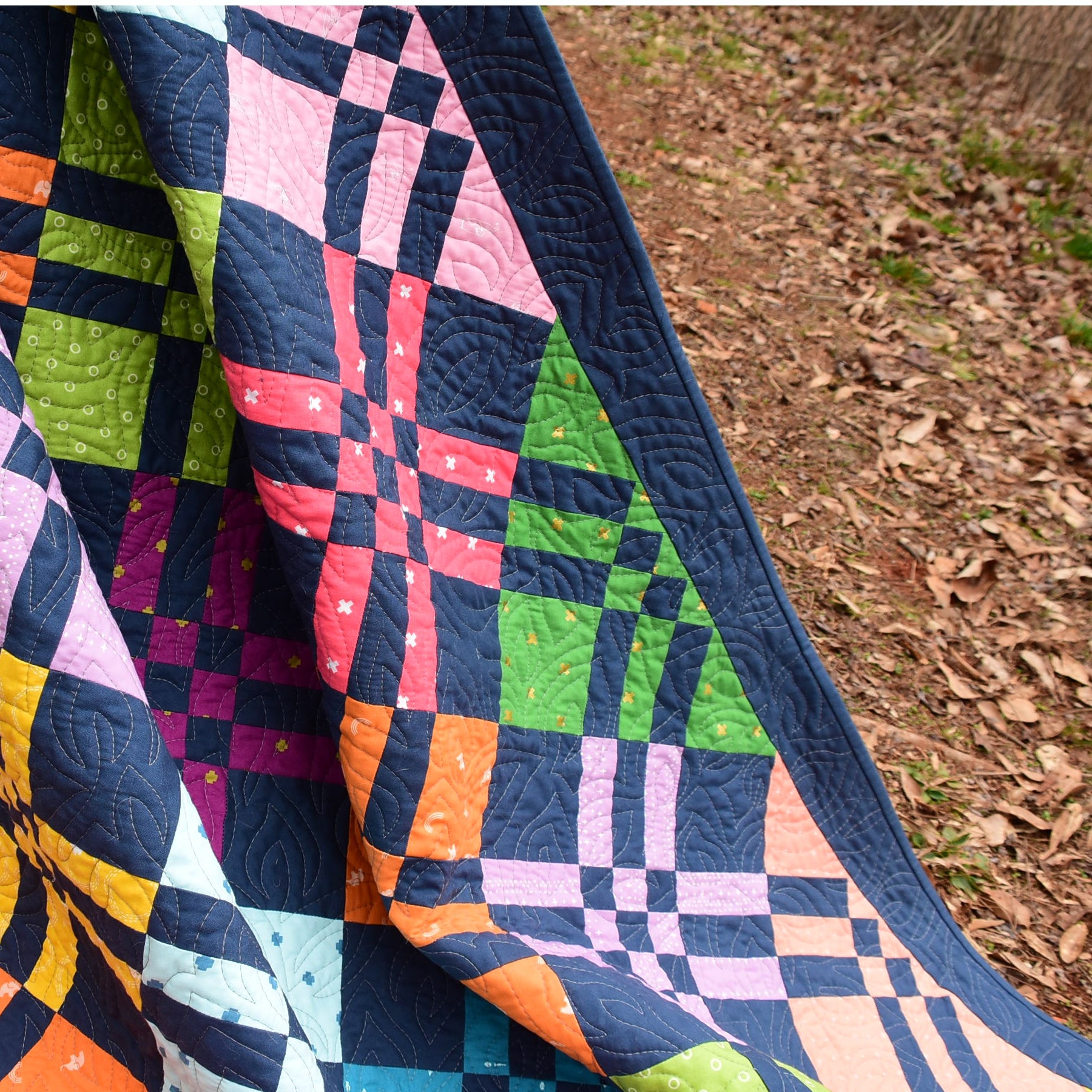 The OLIVE AND HAZEL quilt pattern is a twist on the classic Bradford 9-patch block. This throw-sized quilt pattern is sure to capture the imagination of quilters at the intermediate level and beyond.