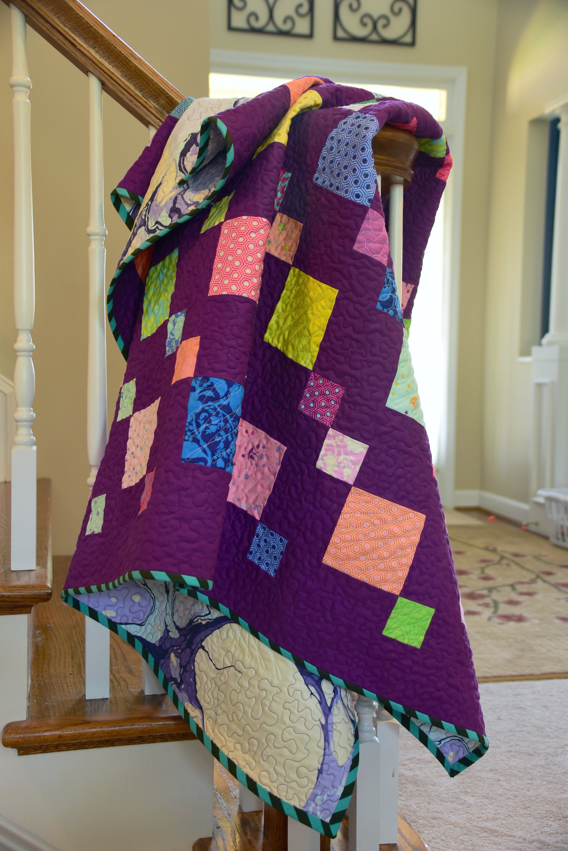 The cover quilt used the True Colors collection as the prints and Tula Pink Solids in Tanzanite as the background, both by Tula Pink for FreeSpirit Fabrics. Warm & White batting by The Warm Company and Aurifil thread were also used in the construction of the quilt.