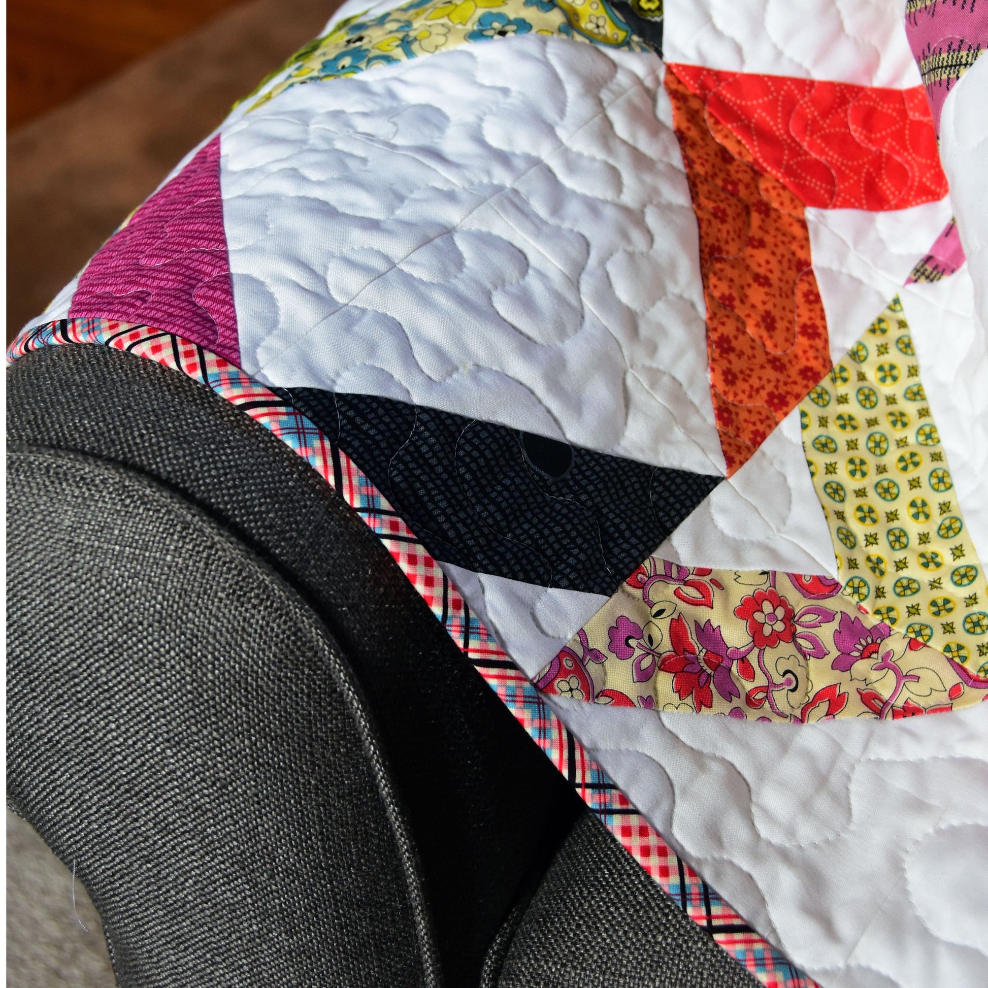The cover quilt was made using Cotton Couture solids by Michael Miller Fabrics, Warm & White batting by The Warm Company, and was pieced and quilted using Aurifil thread. The photograph of the cover quilt was taken by Michelle Bartholomew.