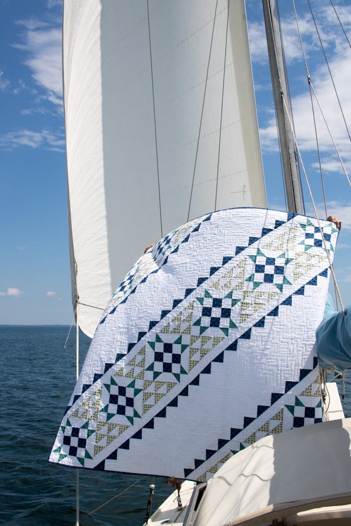 Canvas Lines is a modern take on a tribal styled quilt design with strong geometric shapes and plenty of negative space.