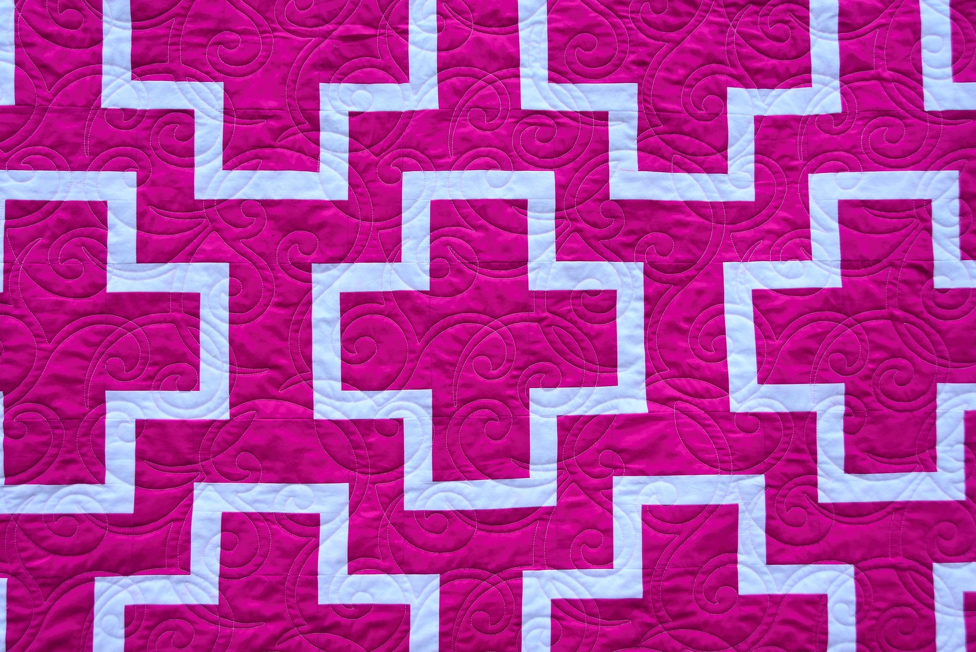 The cover version of the quilt was made using Michael Miller Cotton Couture solids in magenta and white. The batting was Warm & White by the Warm Company and Aurifil thread was used in the piecing.
