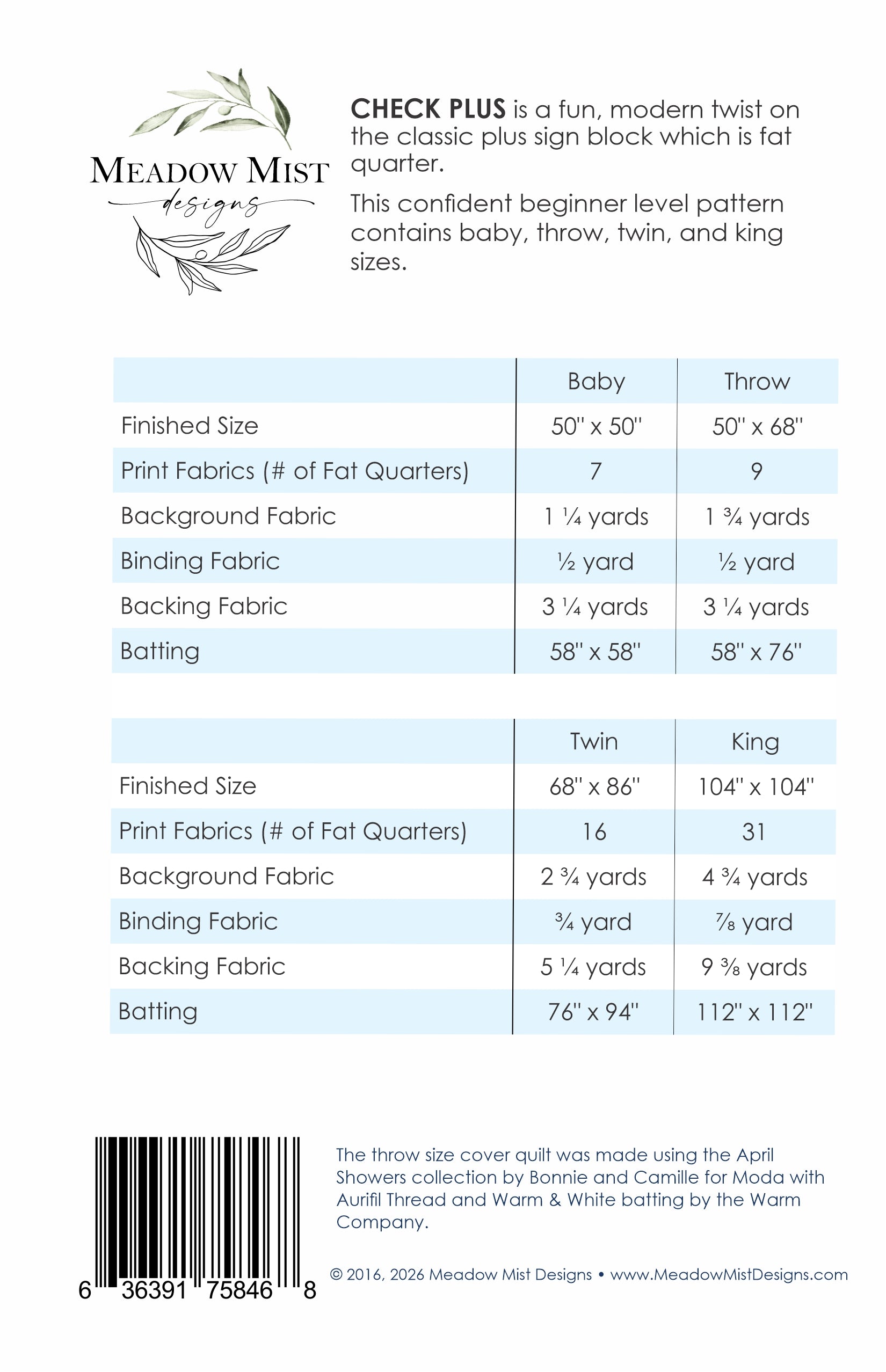 Professionally Printed, Full Color Pattern. You can find the instant download pdf version of Check Plus here.