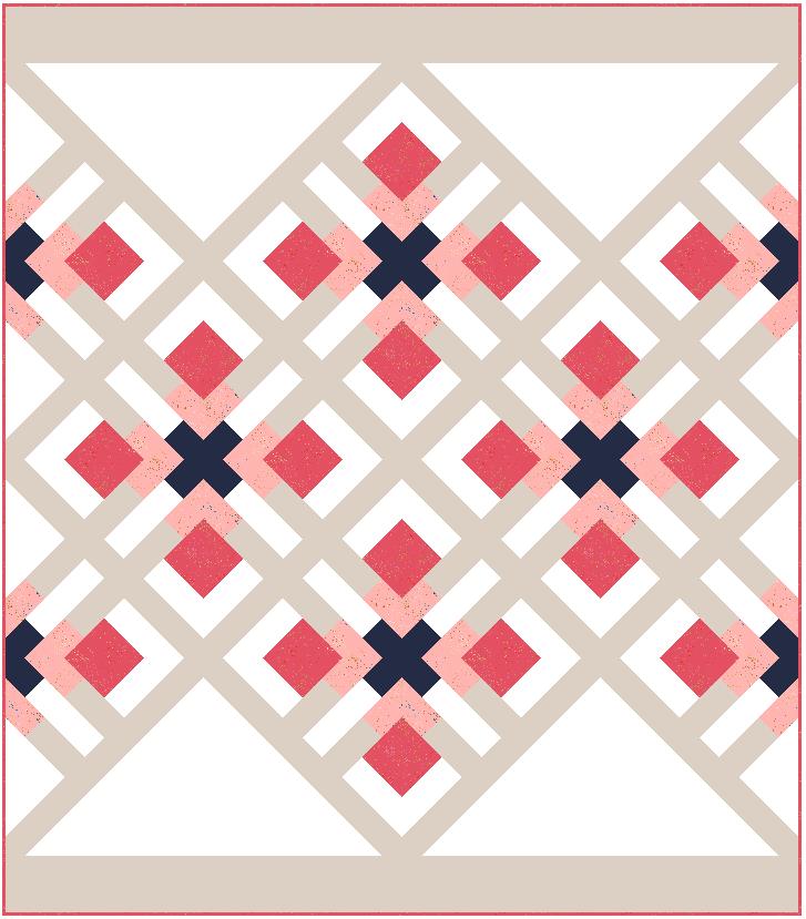 Lattice Vines is an intermediate level quilt pattern where the blocks are set on point and the sashing becomes the lattice.