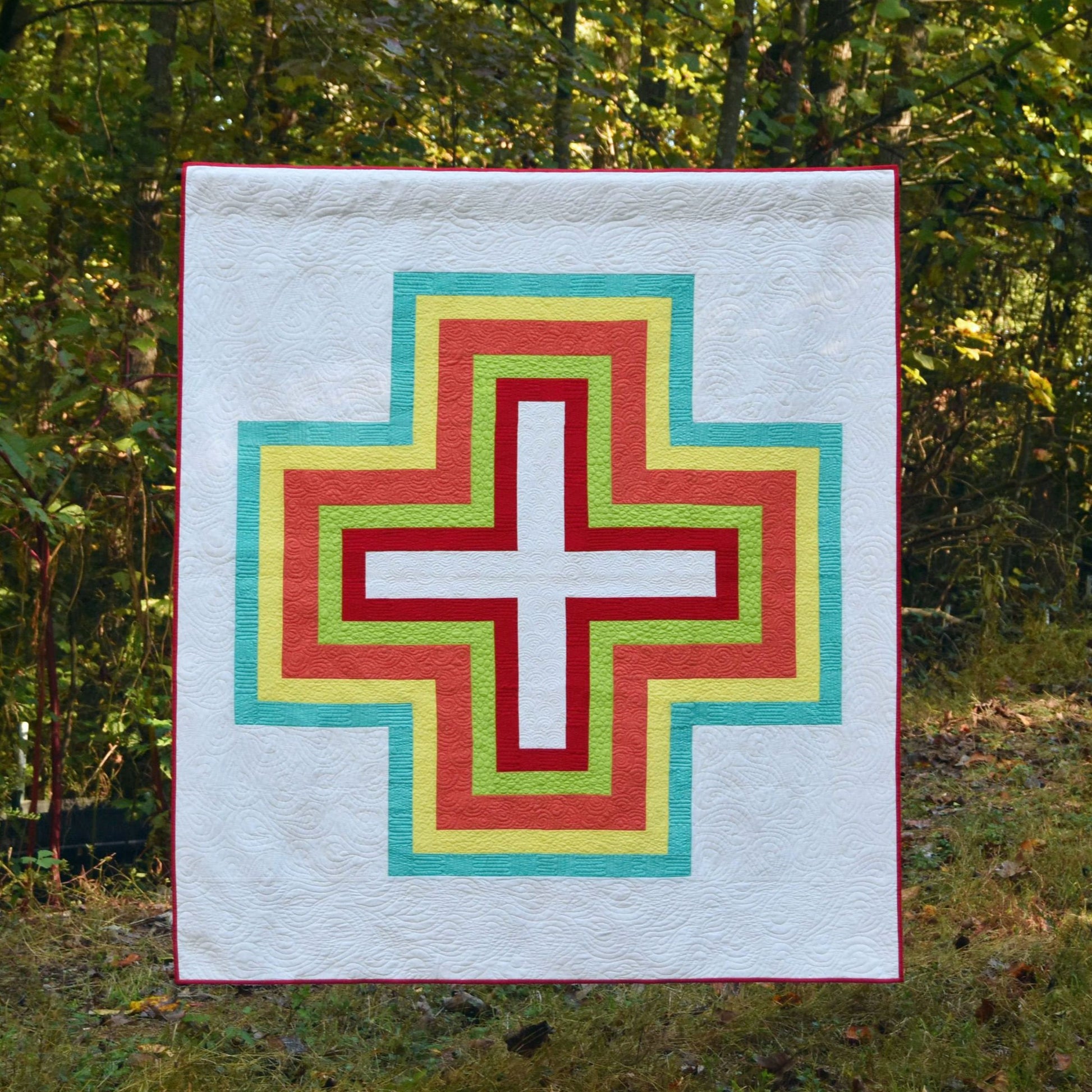 Layered Addition is a confident beginner level quilt pattern that comes together quickly and easily using only 2 different blocks. A coloring diagram of the quilt top is included to audition possible color schemes.