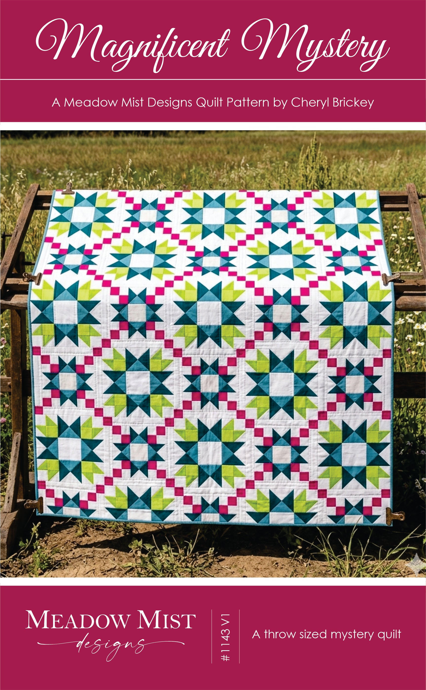 The Magnificent Mystery Quilt was a mystery quilt along hosted by Cheryl Brickey of Meadow Mist Designs. The pattern can be done individually or with a group, as a regular quilt pattern or as a mystery.