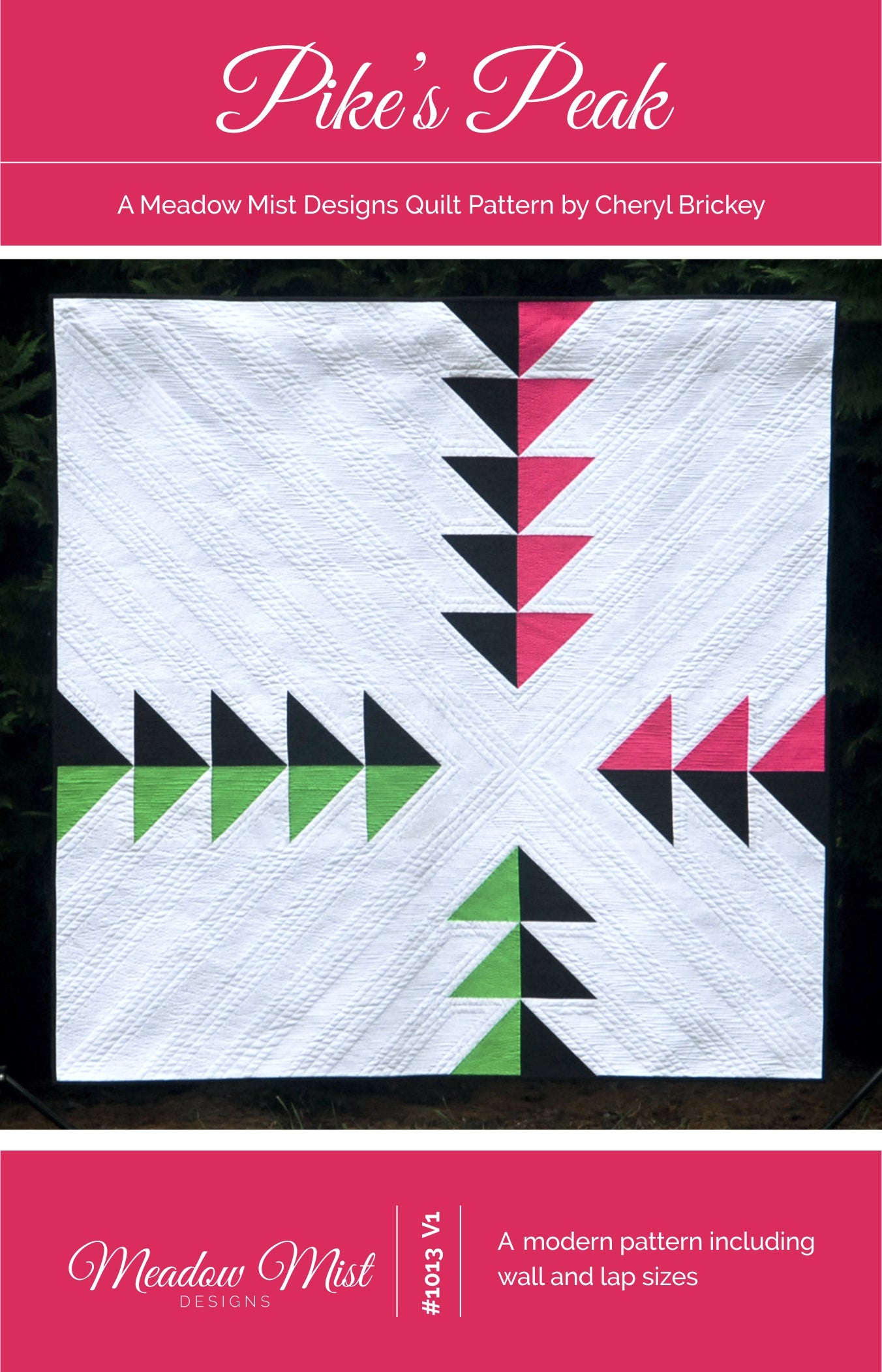 Pike's Peak uses solid colored half square triangles and negative space to create a modern and minimal design with plenty of negative space.