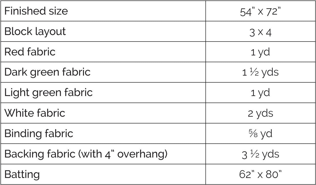 Poinsettia Pinwheel is a fun and modern lap-sized Christmas quilt created by a repeating 18" (finished) quilt block. The pattern includes instructions for a 54" x 72" lap sized quilt, but can easily be made larger or smaller by adding or subtracting blocks.