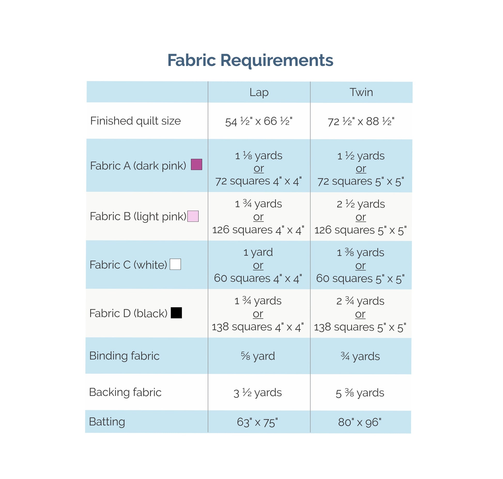 This pattern is confident beginner friendly and is based on half-square triangles. The twin sized quilt has the same design as the lap size (cover quilt) with larger sized blocks.