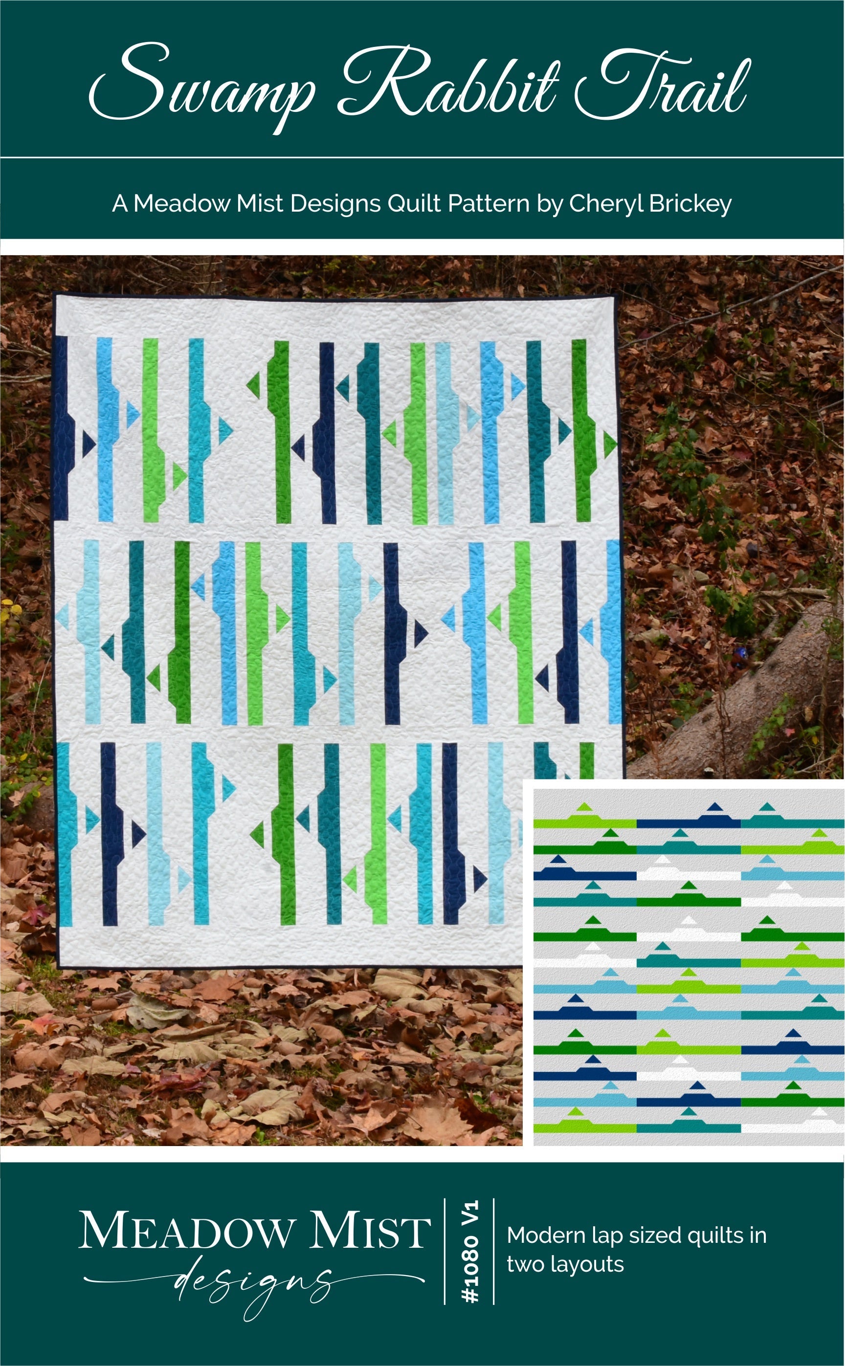 The Swamp Rabbit Trail quilt pattern gets its name from the 22 mile walking and biking path running along the scenic Reedy River on a historic rail bed in Greenville, SC. It is one of my family’s favorite places to hike with its gentle peaks and valleys.