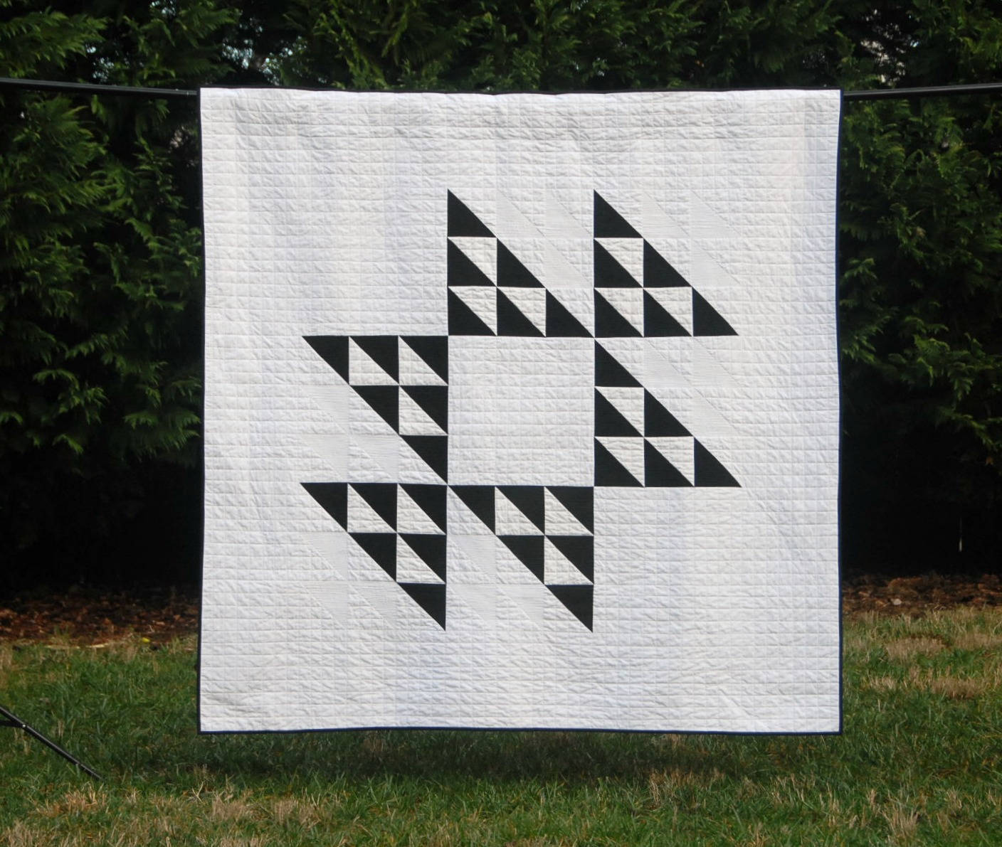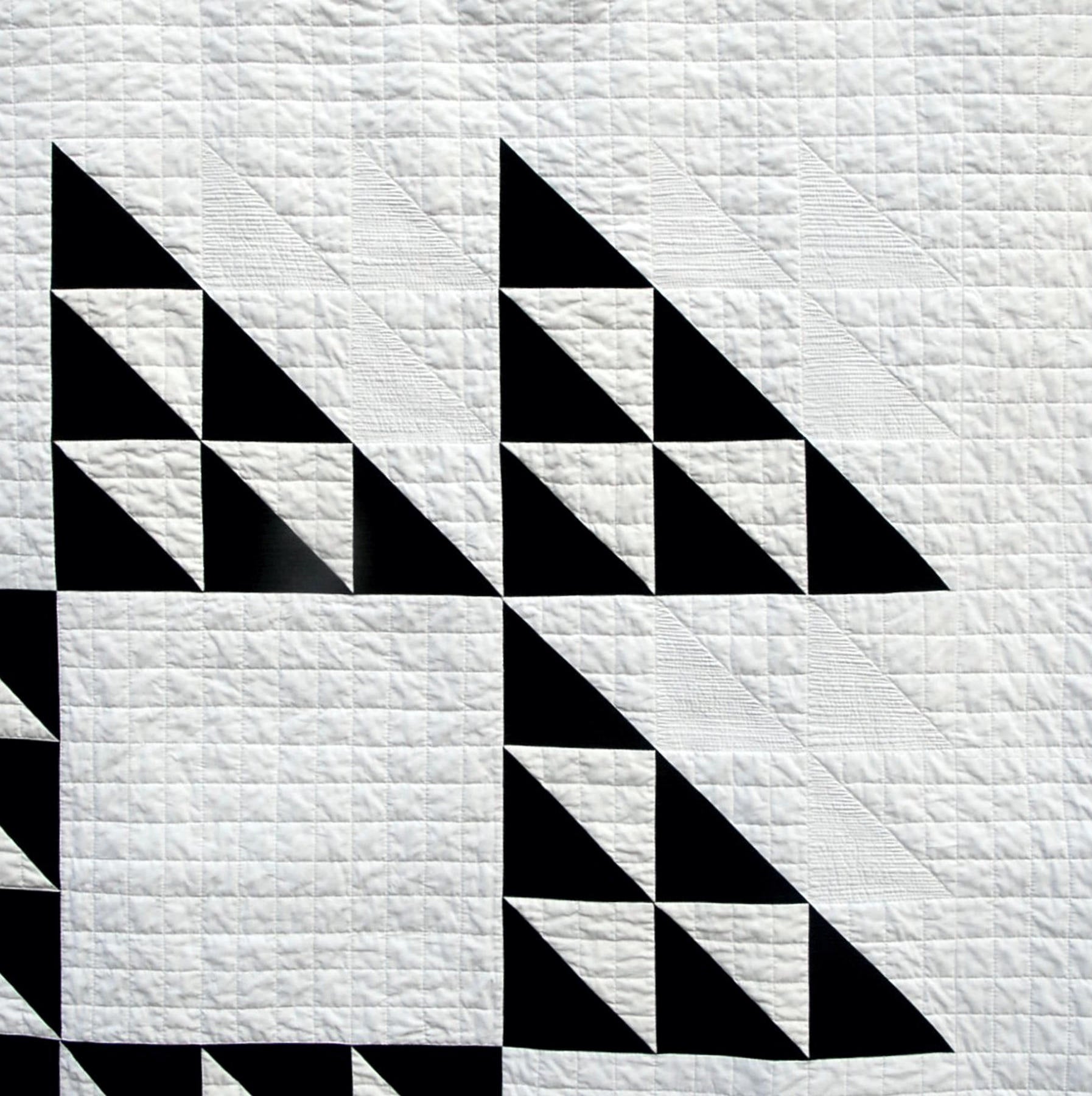 The cover version of the quilt was made using Kona Cotton Solids in White and Black by Robert Kaufman, Warm & White batting by the Warm Company, and Aurifil thread.